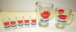 #859 - Schlitz Beer Pitcher w/ Various mugs & glasses