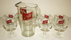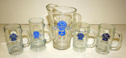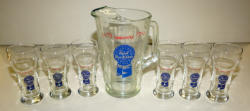 #852 - Pabst Blue Ribbon PBR "Original" Logo Pitcher w/ 6 matching glasses