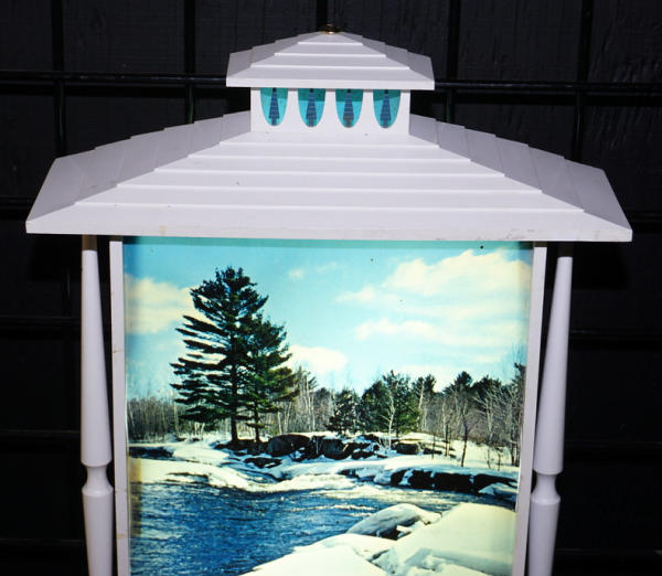 18"x11", works, scene is wavy, no top finial, some scuffs and light wear