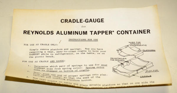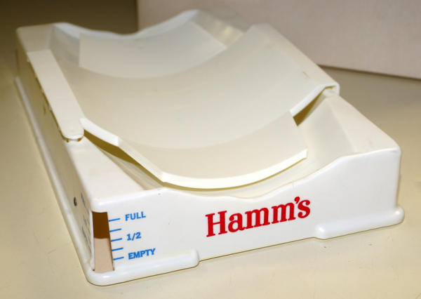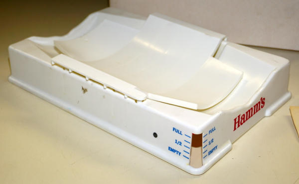 Plastic cradle to hold the keg in the fridge with a small gauge on the corner to show how full it is, NOS in the box, never assembled, springs and gauge are still in the plastic with the paperwork too, neat piece
