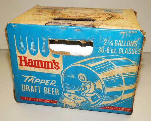 box is complete, but has aging and stains, keg is inside, missing the little button for the tap
