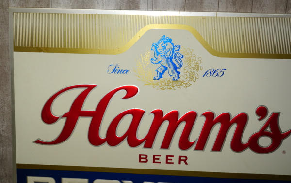 69"x69", super color, few light scuffs and scratches from storage, but never used; this came from the Hamm's Distributor in Yankton, SD; a sign we have never sold before and condition can't get any better! No shipping, pickup in Wakonda only