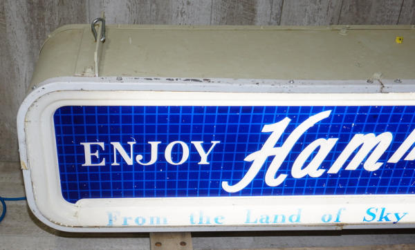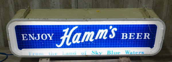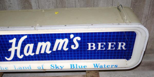 16"x5' Long, 12" deep, only one plastic face and it's in very good condition with a few scuffs and aging, has the original plastic domes on the bottom, can is good, was repainted at one time, will light up, but was wired direct