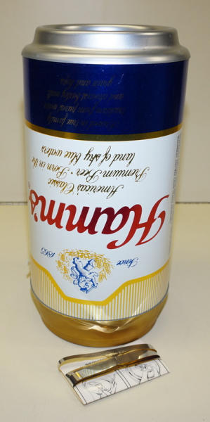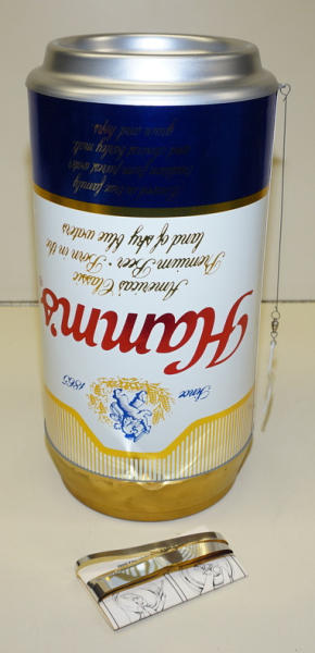 15" tall, NOS mint, lightweight plastic, designed to hang from the ceiling and the ribbon will twirl, looking like it's pour out the beer