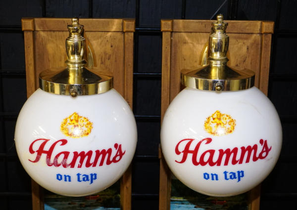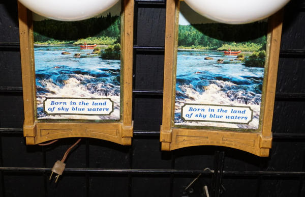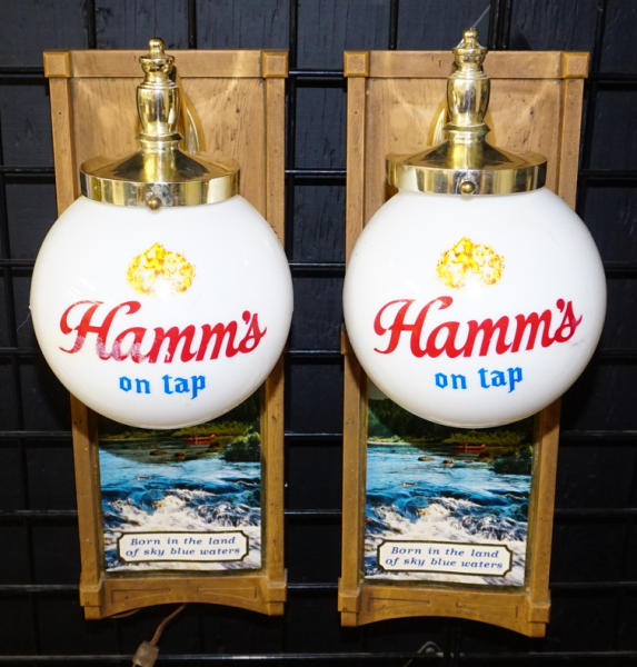 each 19" tall, both work, some age spots on the seams of the globes and light wear, but overall nice condition, Globe version with no finial on the bottom; these were intended to be side lights on both sides of a Scene-a-Rama sign, sells 2x the money