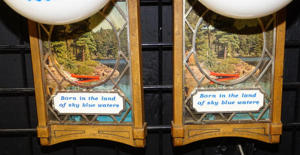each 19" tall, both work, globes are pretty clean, designed to be side lights on either side of the Scene-a-Rama motion sign, sells 2x the money
