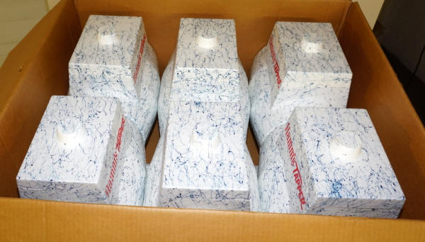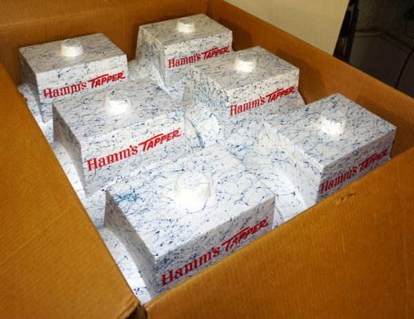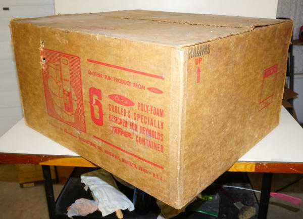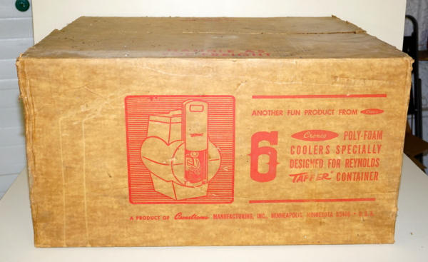 Wow, what a find! 6 NOS styrofoam coolers, in the original shipping box! Box has some general wear, but overall still good and solid, coolers are all MINT with super color; this would make an awesome display! Sells as a set for one money
