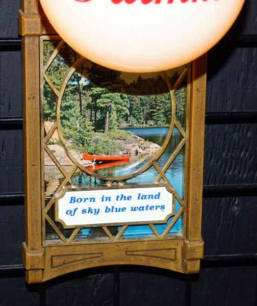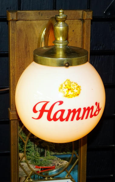 19" tall, 7" globe, good color, missing the finial on the bottom of the globe and "Beer" has been scratched off