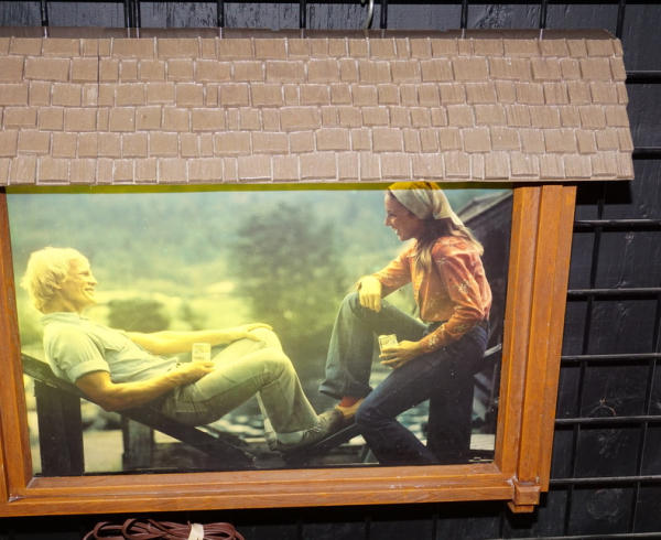 19"x34", has a crack in the cover over the blue lion logo, scene is fine, some light white overspray paint on the case, works, not perfect, but not terrible either