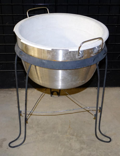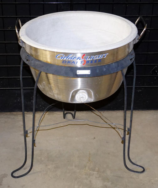 30" tall, 22" across, used, plastic liner has deteriorated from the sun, steel legs, pickup only