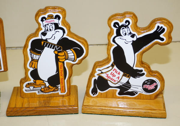 each about 7" tall, all original stickers mounted to a wood back to display, really nicely done, sells as a set