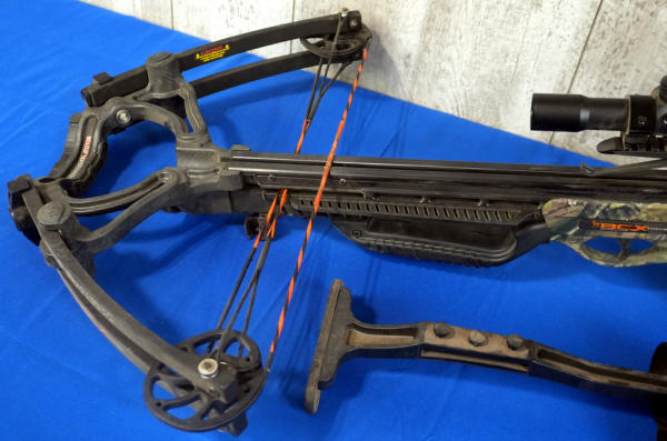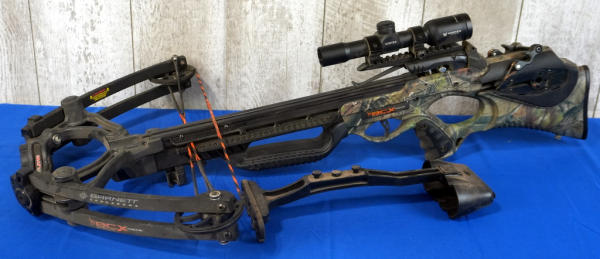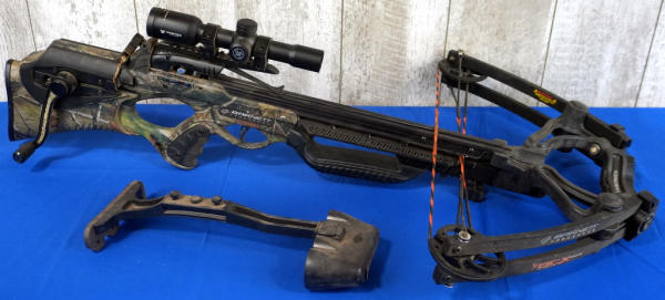 needs a detailed cleaning; includes quiver, Vortex Crossfire II Scope; No transfer needed