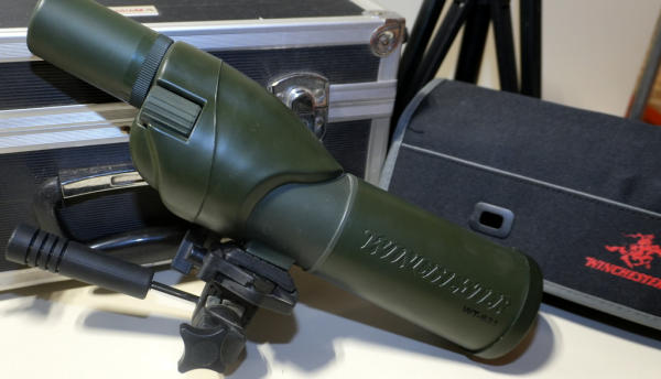 very clear, looks like it was hardly used; includes hard case (needs cleaning), soft case & tripod