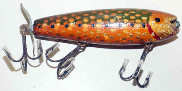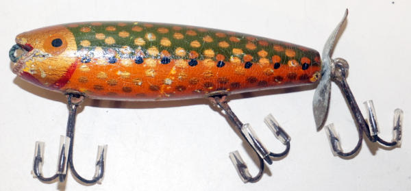 3-hooks; 4" long; has speckled brook trout paint scheme; nice