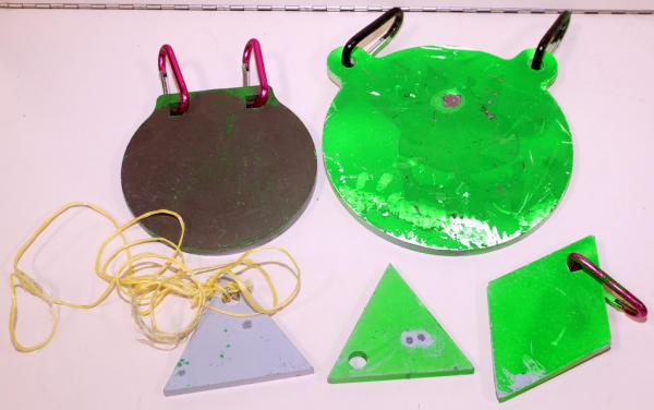 heavy gauge steel, biggest one is about 9" dia; sell for one money