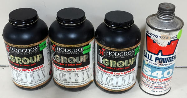 two of the Hodgdon feel full, other two are partial; sell for one money; NO SHIPPING ON POWDER, LOCAL PICKUP ONLY