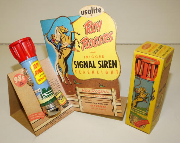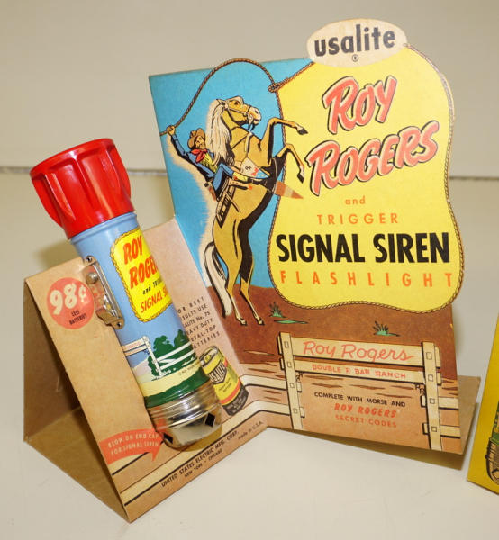 sign is 9.5" tall, tin-litho flashlight is MINT, box and display are both near mint originals too, great set