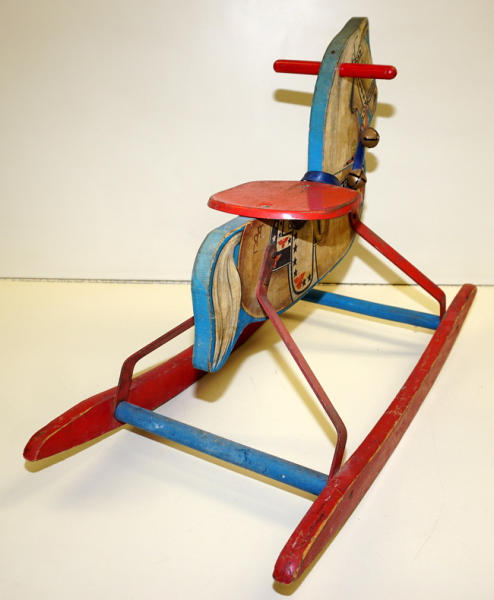 26" long, all wood with metal supports, has some general play wear