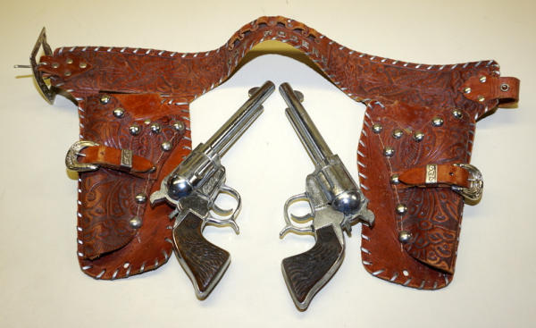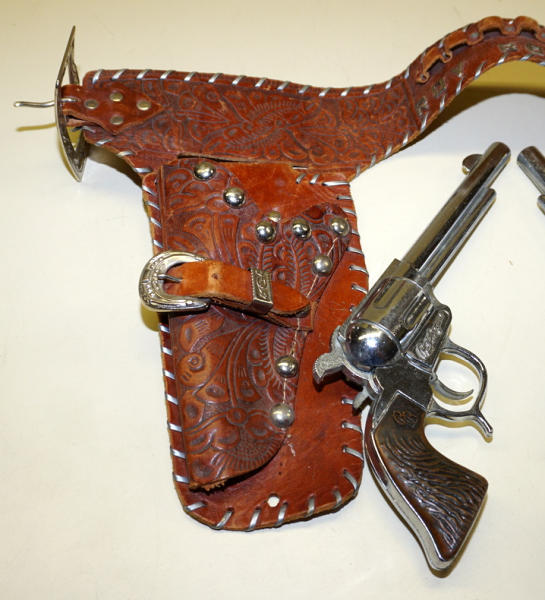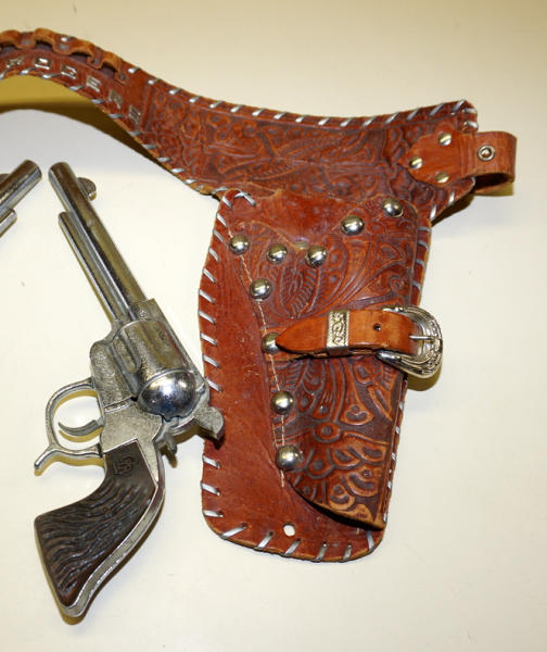 matching 10" RR's guns, but not working; nice holster with the metal "Roy Rogers" on the back side