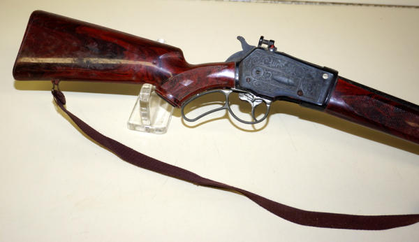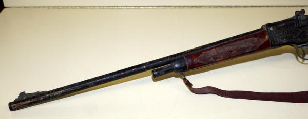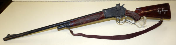 34" long, plastic stock, metal barrel, has the "Roy Rogers" marking on the stock, pretty heavy wear and mechanism does not work