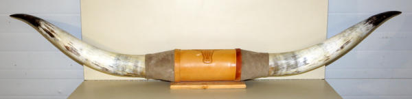 about 82" spread and 4" thick at the base, really great color and an impressive set of heavy longhorns; no shipping, pickup only