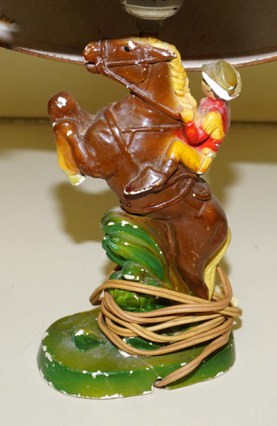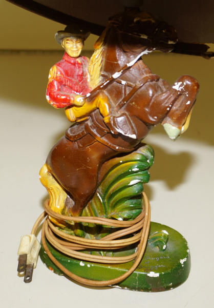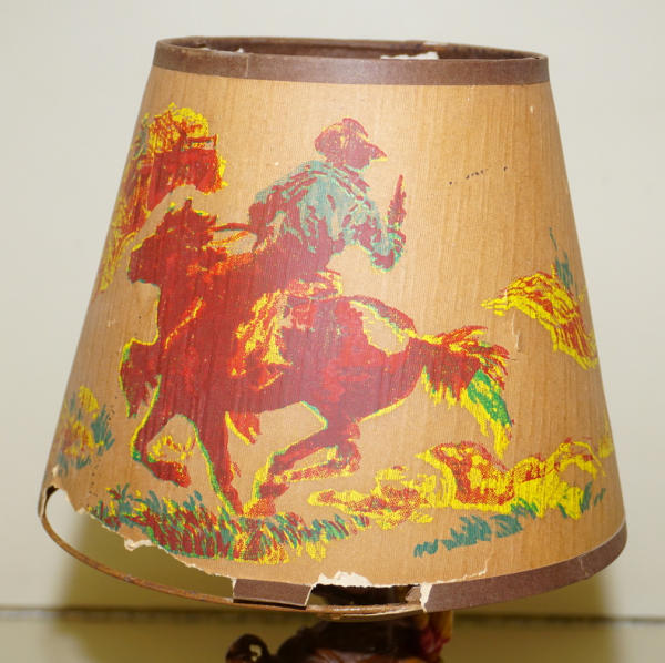15" tall, has several small paint chips and wear to the base, Shade has damage too, as-is condition, did not test to see if it works