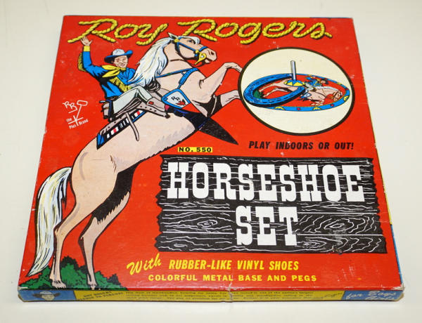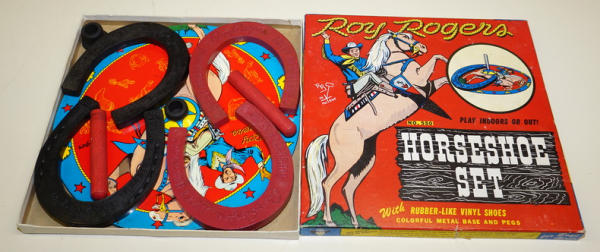 Tin-Litho bases, hard rubber horseshoes, really colorful box with light wear
