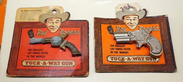 largest gun is 5.5" long, all the cards have wear, small revolver has some corrosion, sells 3x the money