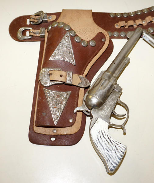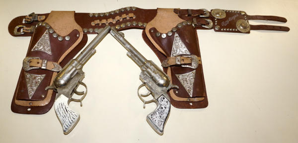 10" guns are the same guns, but different style grips, both guns work, 2-tone leather holster has some aging, but overall very nice