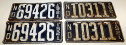 #17 - ND 1928 Plates--White on Black--2 matched pairs