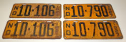 #13 - ND 1927 Plates--2 matched pairs--Black on Orange