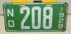 #15 - ND 1928 3-Digit plate--good original--White on Green