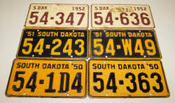 #37 - SD 1950-1951-1952 Plates--all Roberts County singles