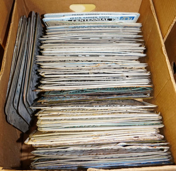 100 +/- Plates fit in a banana box; mostly singles, some good, most are going to be dirty/used plates, local pickup is suggested due to the weight, but we will ship too, but it is expensive due to the weight