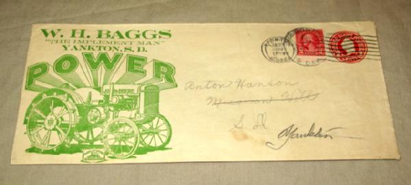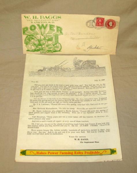 Letter unfolds to show great color "D" Tractor. Envelope is also nice with super graphics, sells as a set