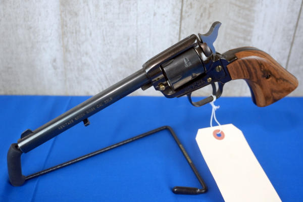 6.5" BBL; 6-shot LR & Mag cylinders; smooth wood grips; factory wood showcase; like new condition; USA; SN#HR87375