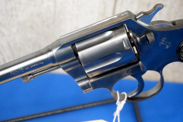 5" BBL; outstanding bluing; 6-shot cylinder; factory checkered Colt plastic grips; swing-out cylinder; amazing used condition, collector grade; USA; SN#305003