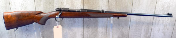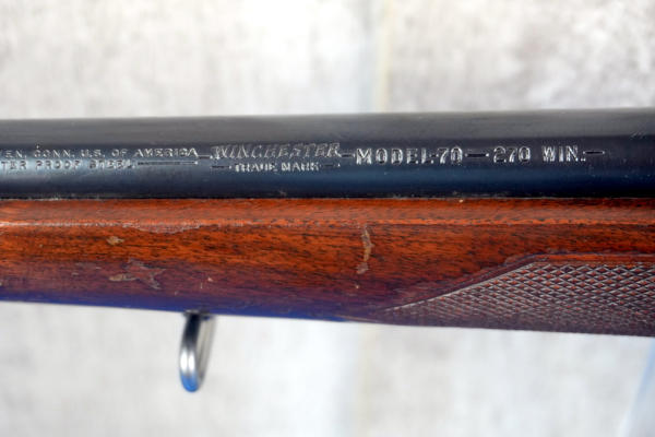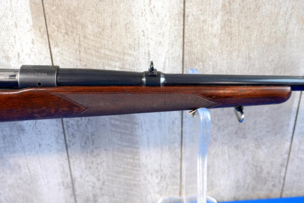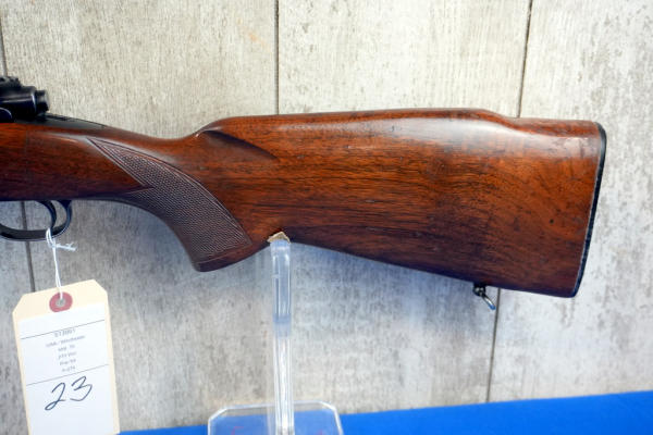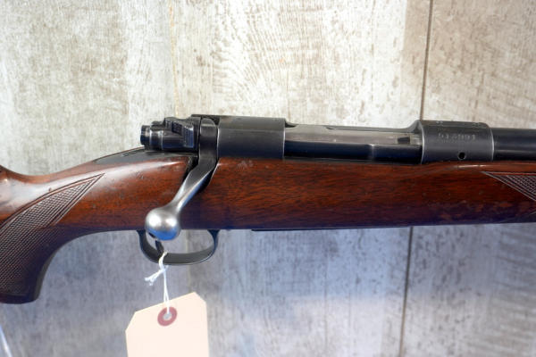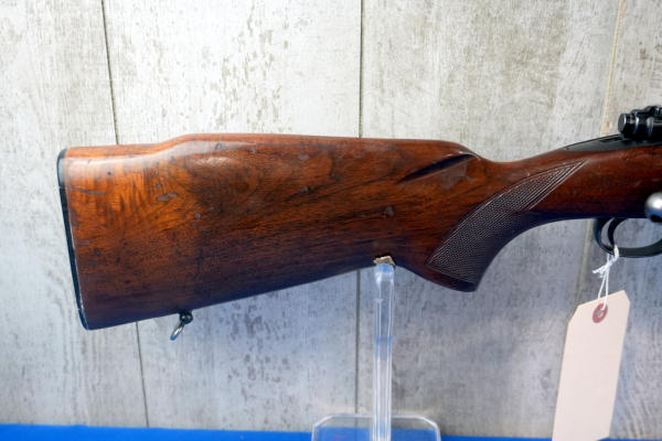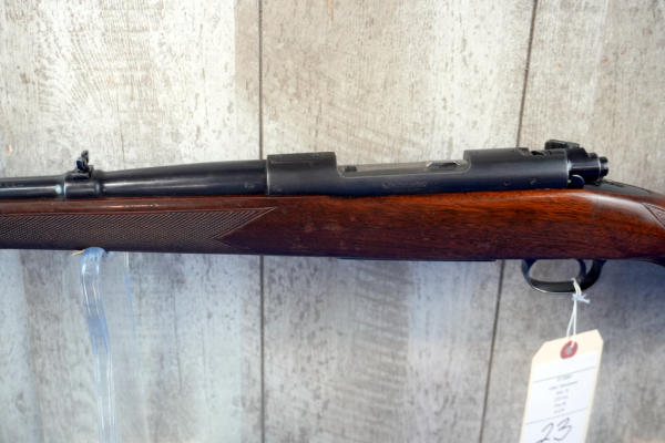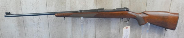 24" BBL; smooth action; hooded front sight; wood stock w/checkering; wood has finish wear & marks; nice bluing; USA; SN#513991