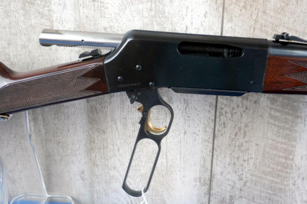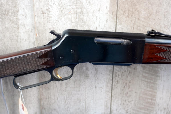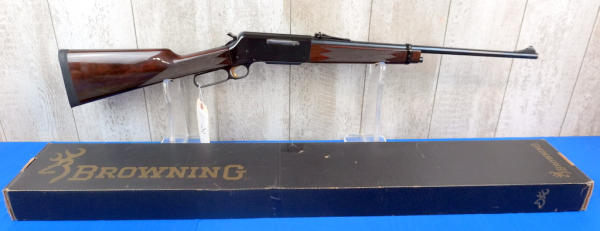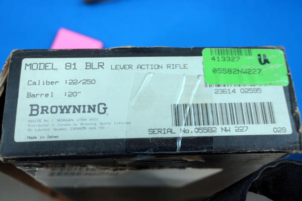 20" BBL; short smooth lever action; removable magazine; looks like it's been fired but like new condition w/original box; gold trigger; high gloss English stock w/checkering; nice gun! Japan; SN#05582NW227