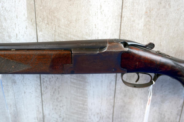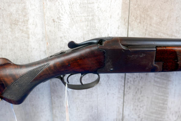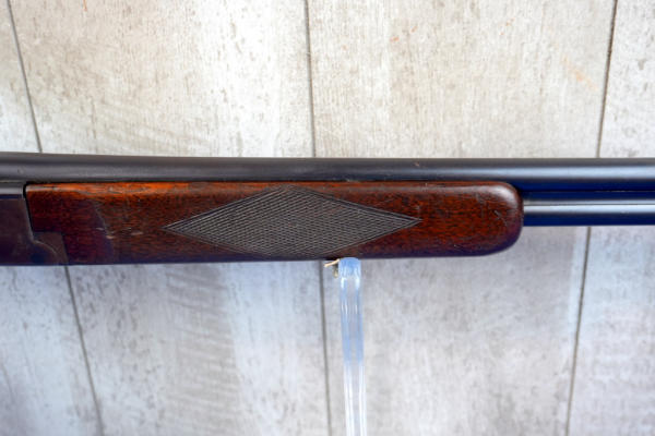26" BBLs; easy break action; two triggers; wood stock w/checkering has some field scratches; engraved receiver w/brown tint patina; 2.75"; Top-FC, Bot.-MC; USA; SN#17583