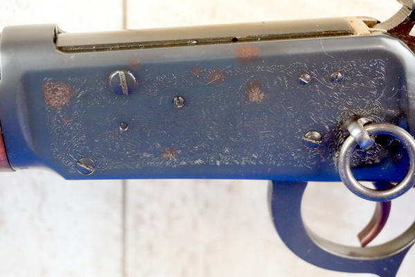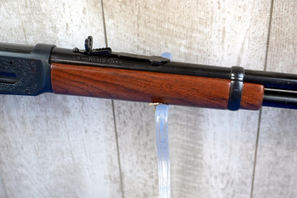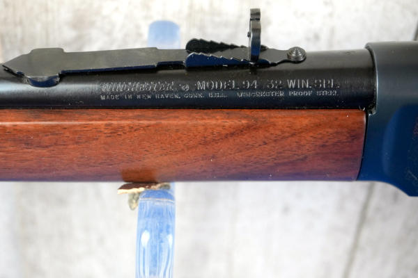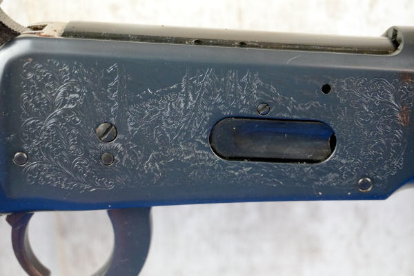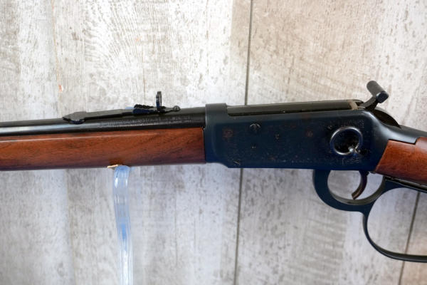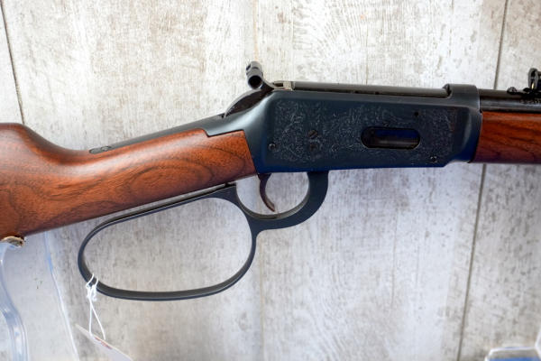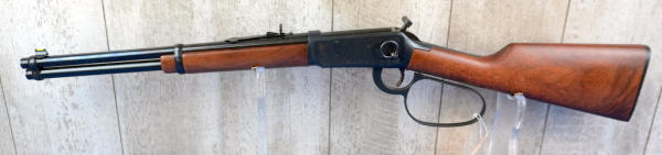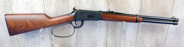 16" BBL; highly engraved receiver; large loop; saddle ring; has some brown spotting on left side of receiver otherwise near mint; no box; hy-vis front sight; English wood stock; USA; SN#5109371