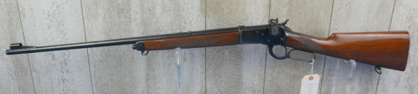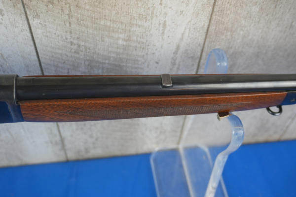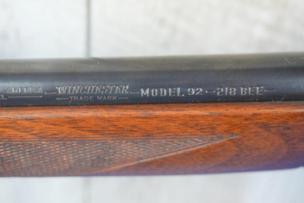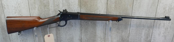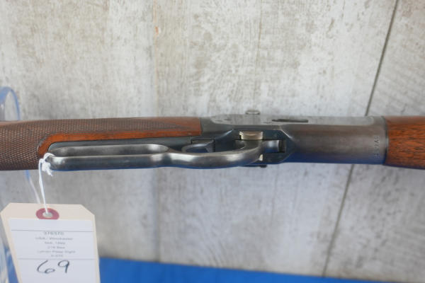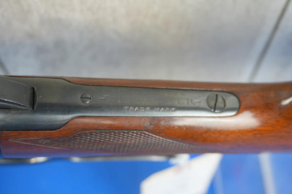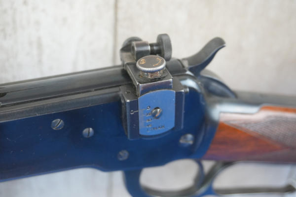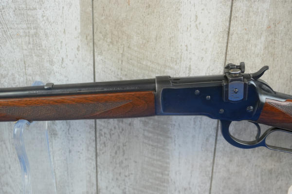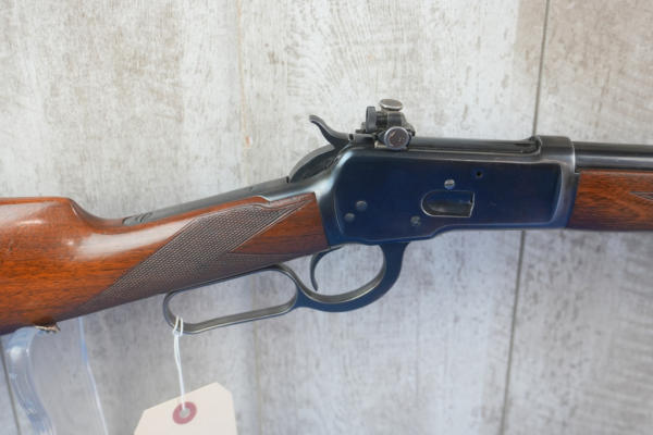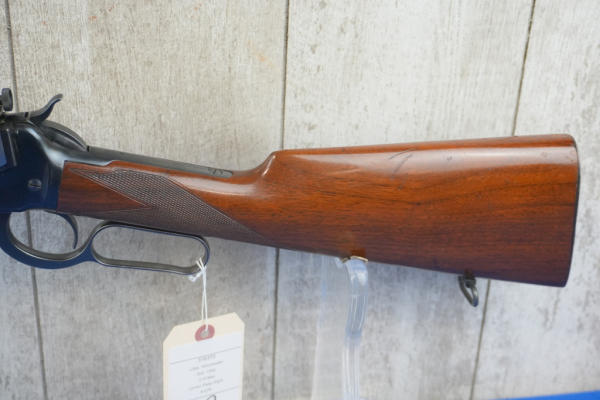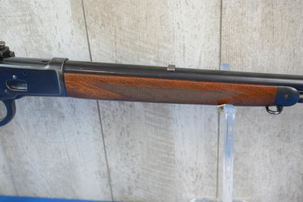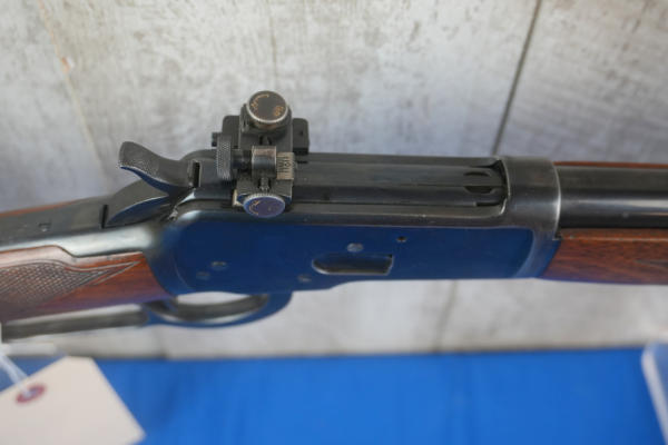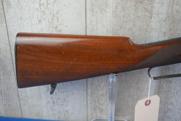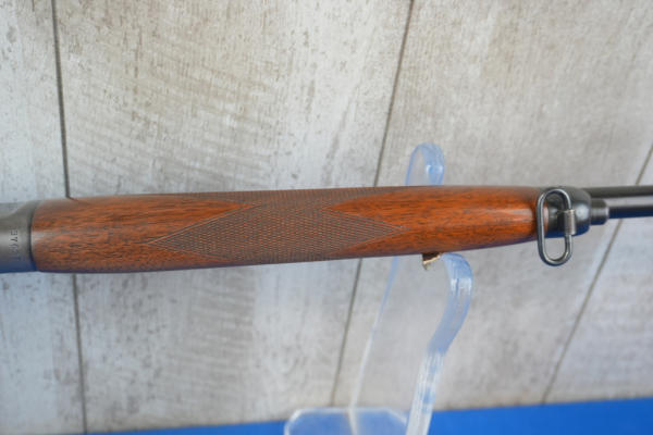 24" BBL; smooth action; Lyman peep sight; high gloss finish stock has some marks from use; very nice bright bluing; metal butt plate; Marbles flat rear sight w/hooded front sight; this is an extremely hard caliber to find in the 1892!; half length receiver tube; USA; SN#376370