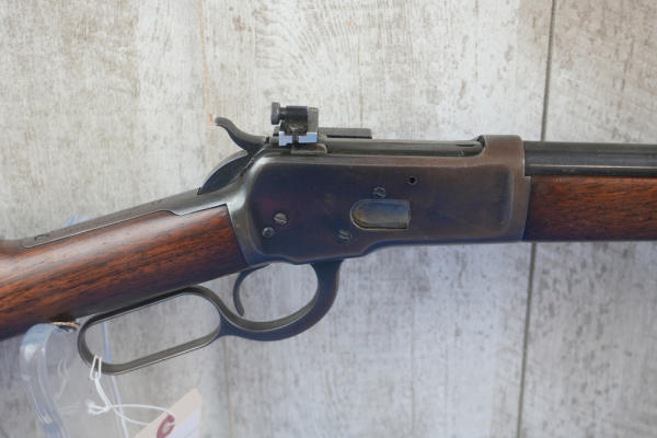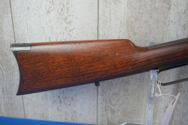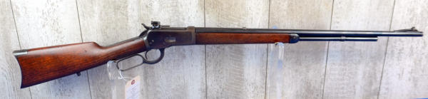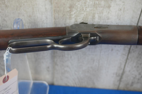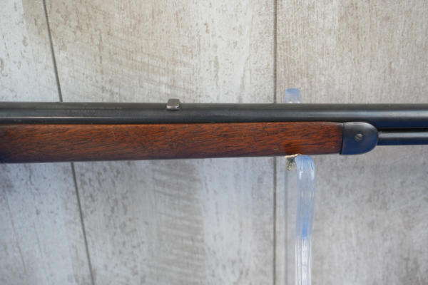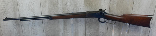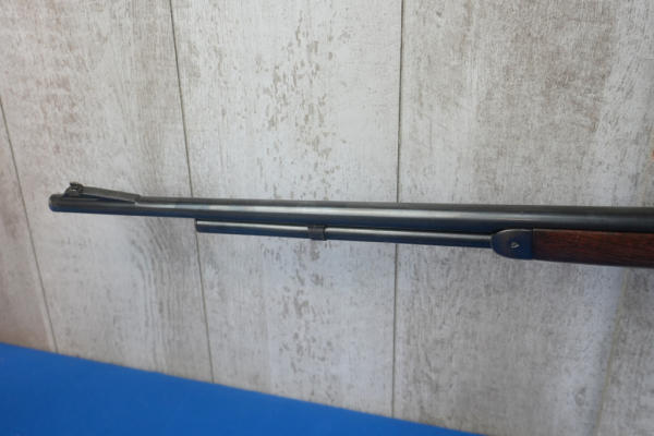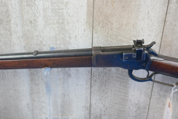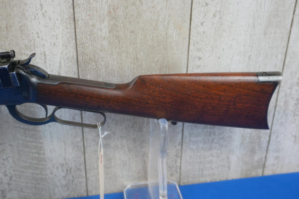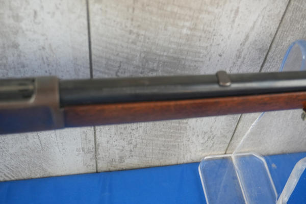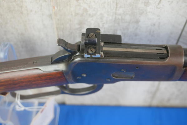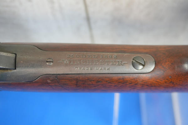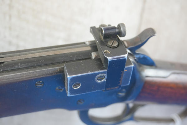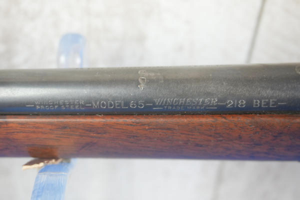 this gun has a Winchester Model 65 .218 Barrel added to a Model 1892 receiver; 24" BBL with 2/3rd length receiver tube; smooth action; metal crescent butt plate; bluing on barrel is nice, thin on receiver; Williams rear peep sight; USA; SN#338617