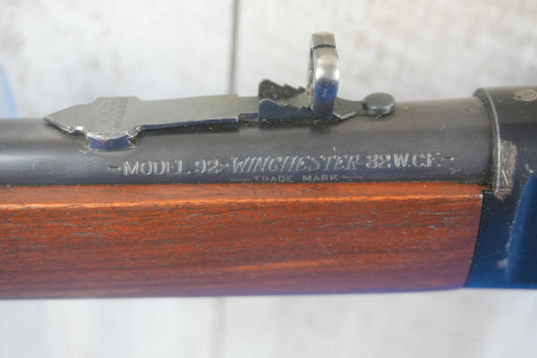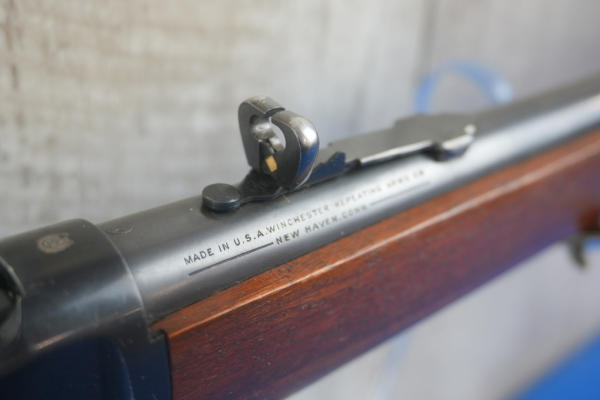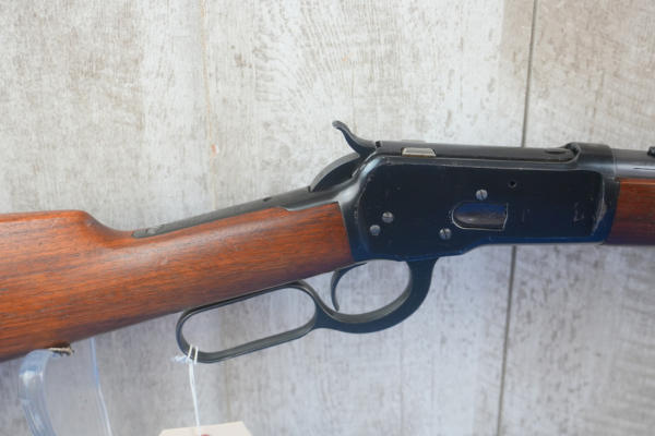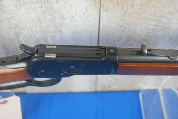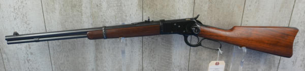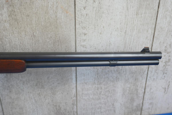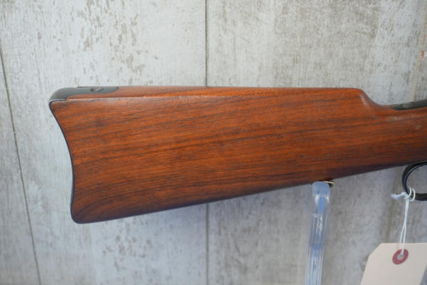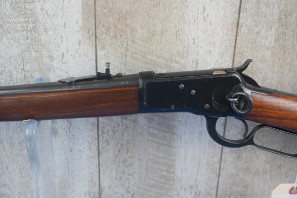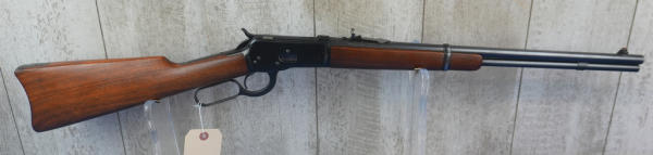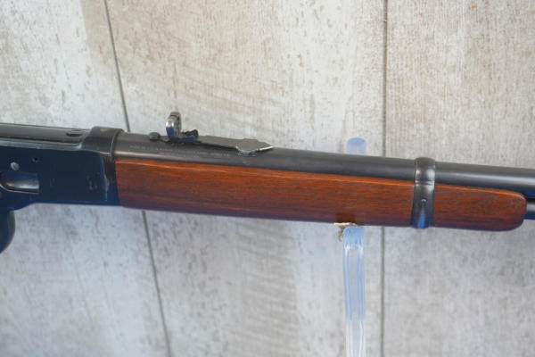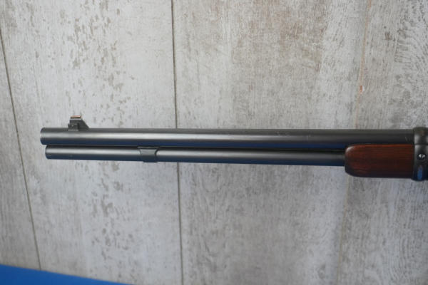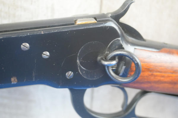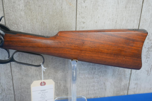 20" Rnd. BBL; action catches; dark bluing, has some marks; metal crescent butt plate; saddle ring; full length receiver tube; USA; SN#990885