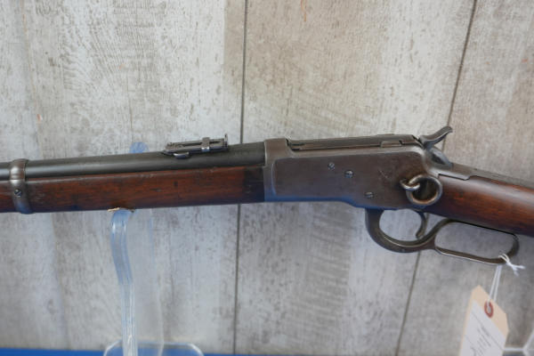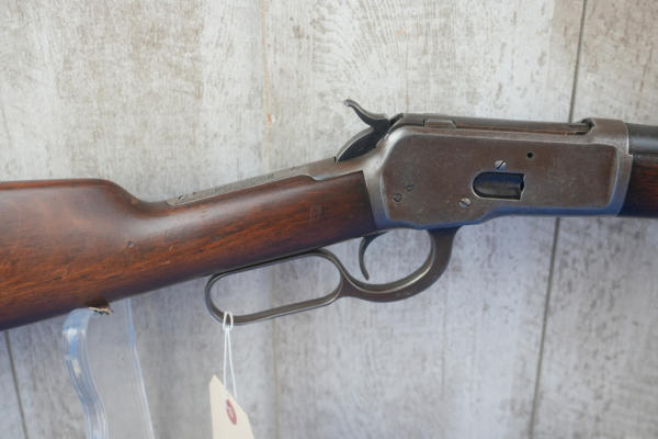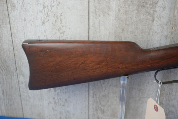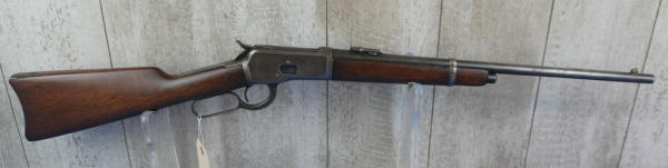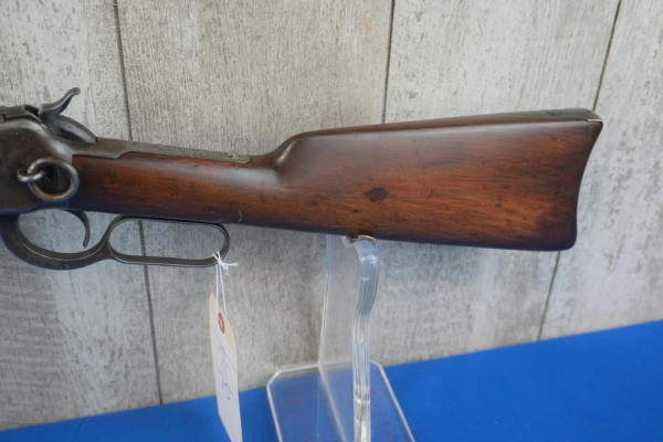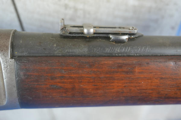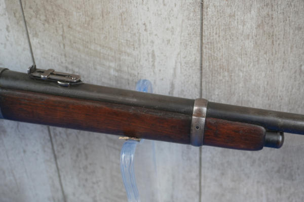 20" Rnd. BBL; half length receiver tube; action catches; saddle ring; metal crescent butt plate; bluing is gone on receiver; adjustable rear sight; USA; SN#968283