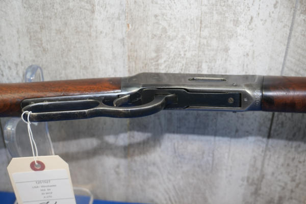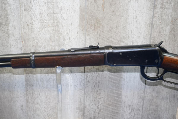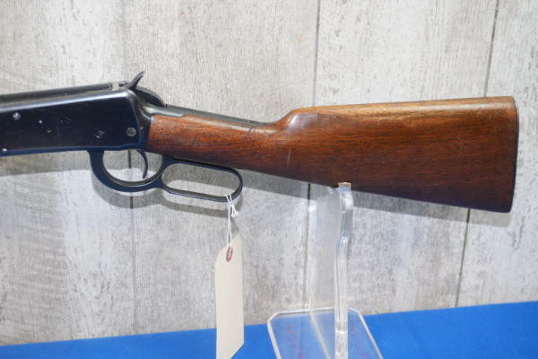 20" Rnd. BBL; smooth action; full length receiver tube; metal butt plate; nice bluing, does have some scratches on left side of receiver; hooded front sight; USA; SN#1251027