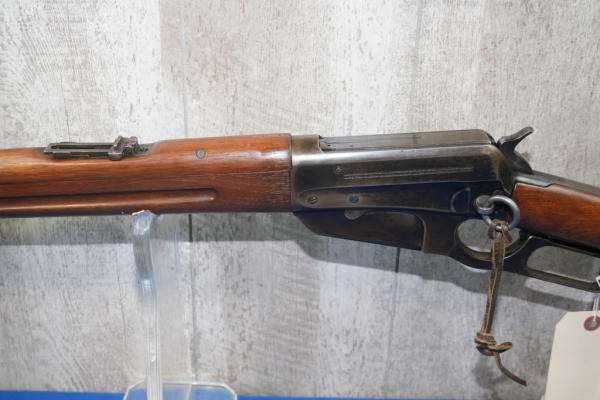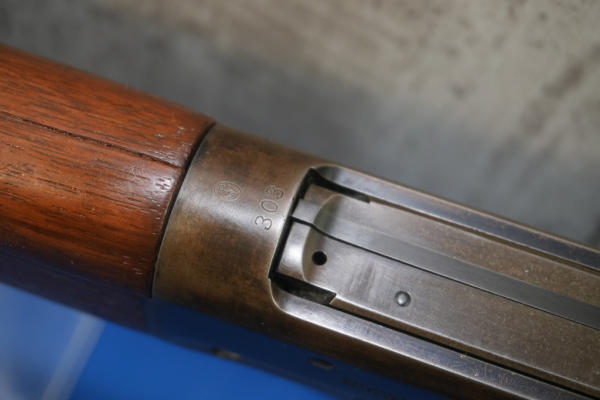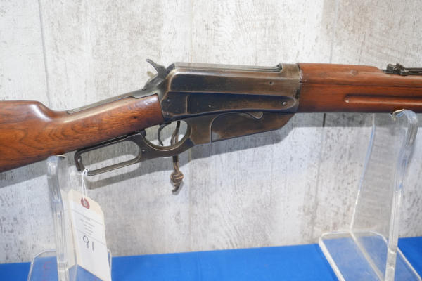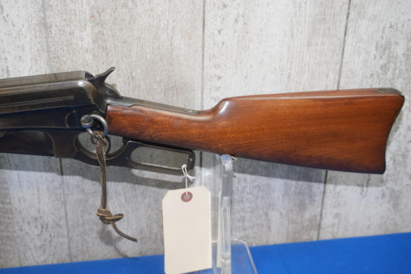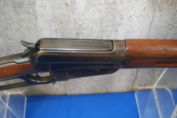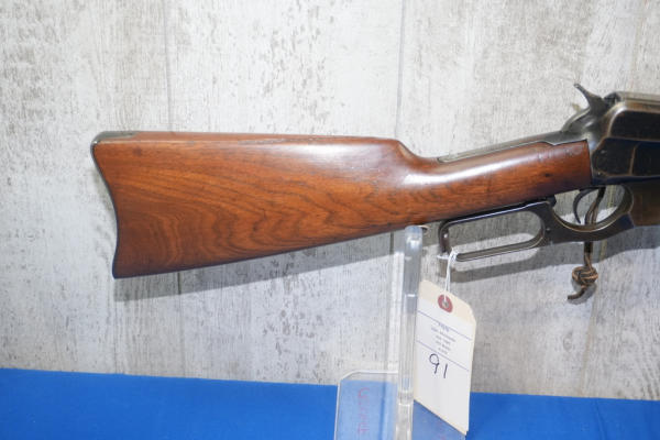 22" BBL; bluing worn on receiver; smooth action; metal crescent butt plate; adjustable rear sight; saddle ring; USA; SN#77976