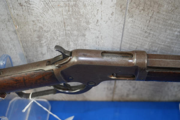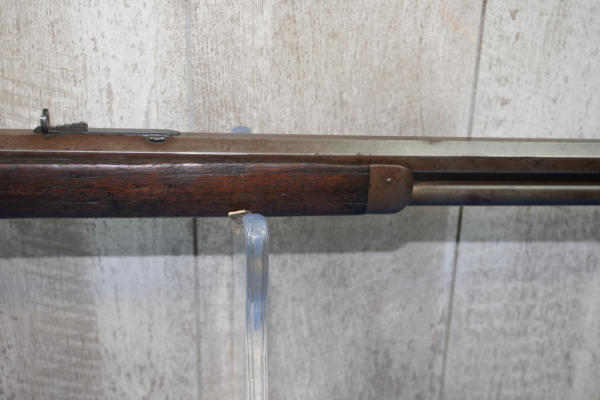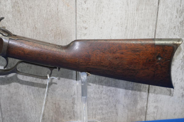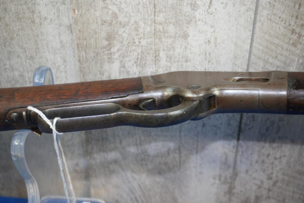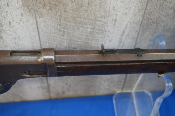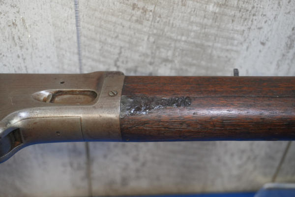 never had one of these come through!; 18" Heavy Oct. BBL w/full length receiver tube, believe the barrel has been cut down; smooth action; metal crescent butt plate; English stock; bluing is thin and wood has some damage, cracks and wood filler; rare gun; No Transfer needed; USA; SN#2362