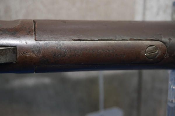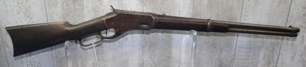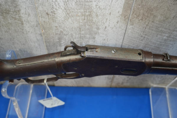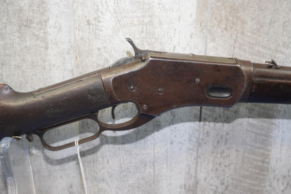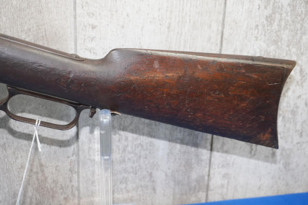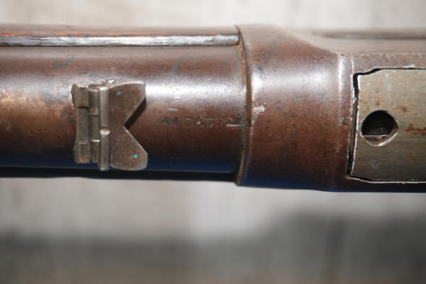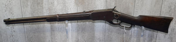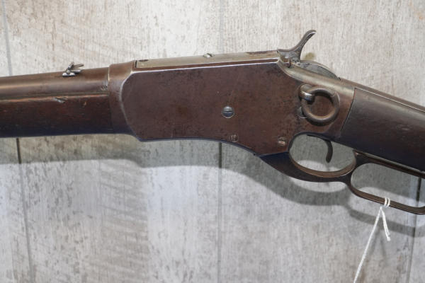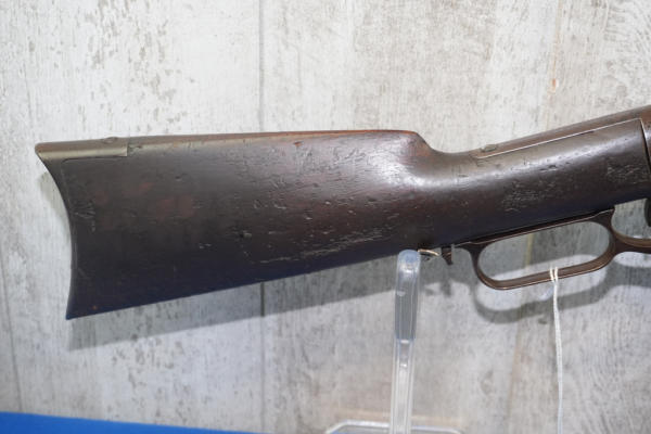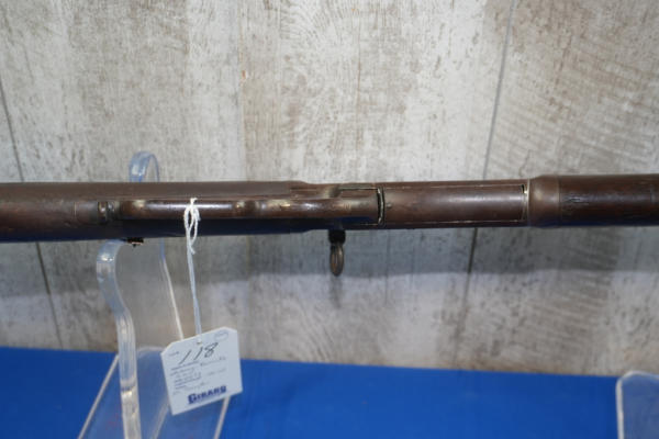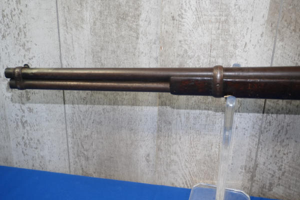 20" Rnd. BBL w/full length receiver tube; smooth action; metal crescent butt plate; one side of butt stock has been painted brown; dark brown patina; saddle ring; No Transfer needed; USA: SN#H699
