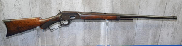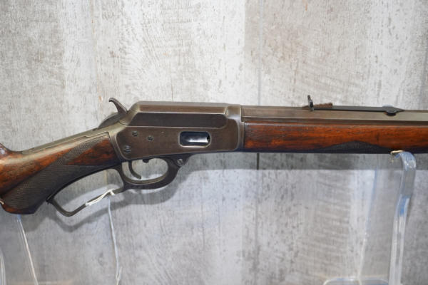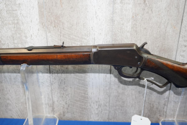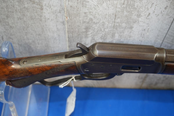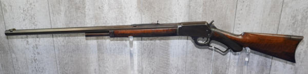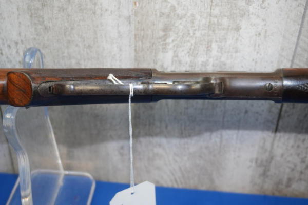 24" Oct. BBL; half length receiver tube; nice checkered wood stock; metal crescent butt plate; smooth action; light bluing; mfg. 1889-1895; No Transfer needed; USA: SN#32014